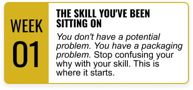 You don't have a potential problem. You have a packaging problem. Stop confusing your why with your skill. This is where it starts.
