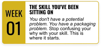 You don't have a potential problem. You have a packaging problem. Stop confusing your why with your skill. This is where it starts.
