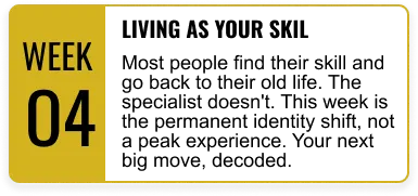 Most people find their skill and go back to their old life. The specialist doesn't. This week is the permanent identity shift, not a peak experience. Your next big move, decoded.